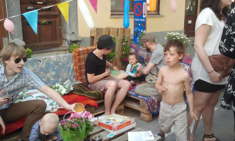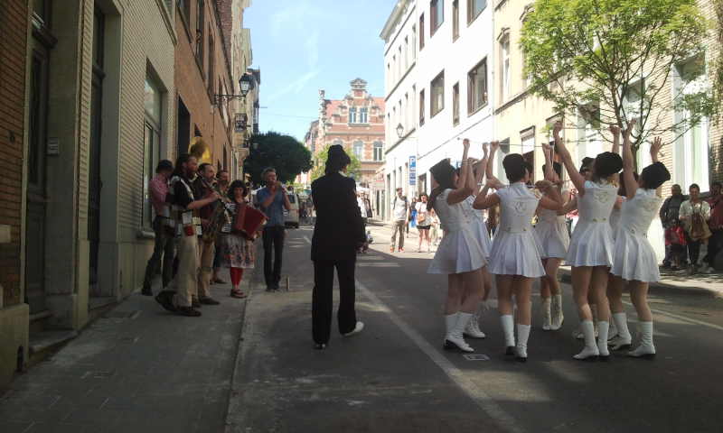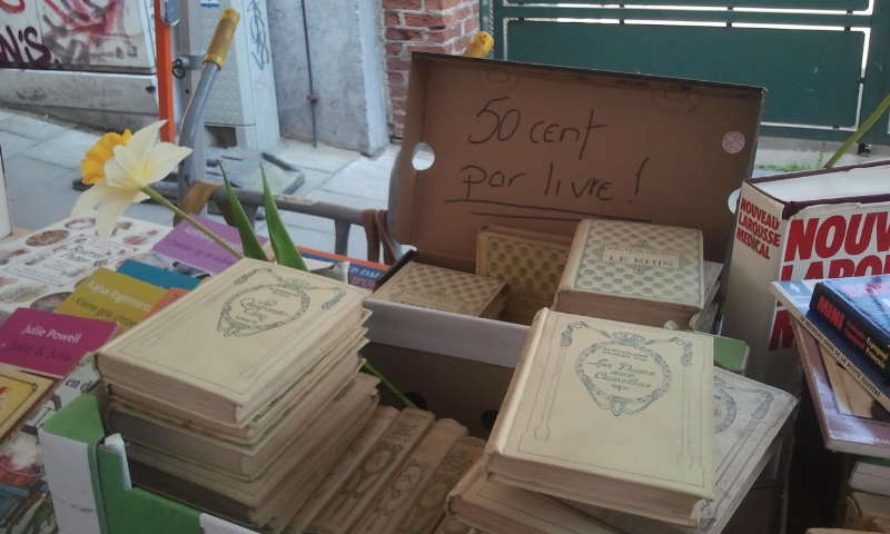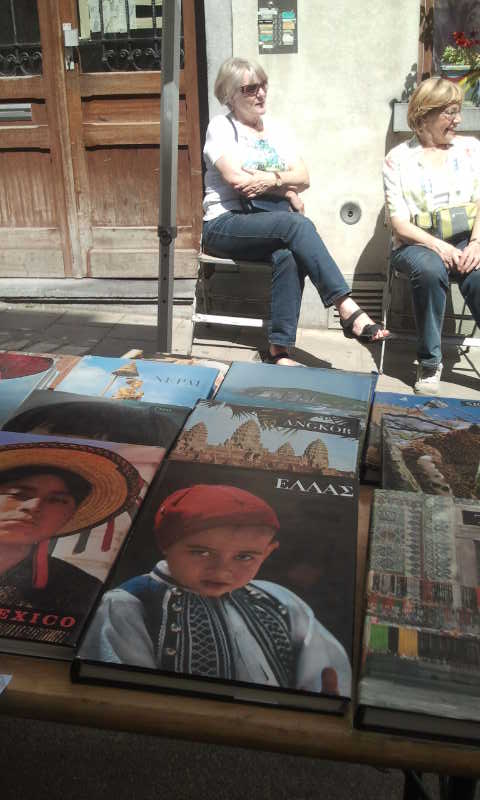 Σήμερα λοιπόν, που τυχαίνει να είναι και μια καταπληκτική ανοιξιάτικη μέρα, πήγα κατά τις 14.00 στο μικρό μας δρόμο και είδα περί τίνος επρόκειτο: οι κάτοικοι της οδού είχαν στήσει μικρούς πάγκους και τέντες και πουλούσαν ο καθένας τα βιβλία του! Αλλά είχαν οργανώσει και πάγκους με φαγητά, και μια μικρή καντίνα με Ιταλική κουζίνα, μια ομάδα από μαζορέτες και μια μπάντα του δρόμου! Δραστηριότητες για τα παιδιά και παιχνίδια του δρόμου. Η μικρή βιβλιοθήκη του δρόμου ανοιχτή φυσικά καθώς και το προαύλιο του σχολείου όπου γίνονταν άλλες δραστηριότητες.