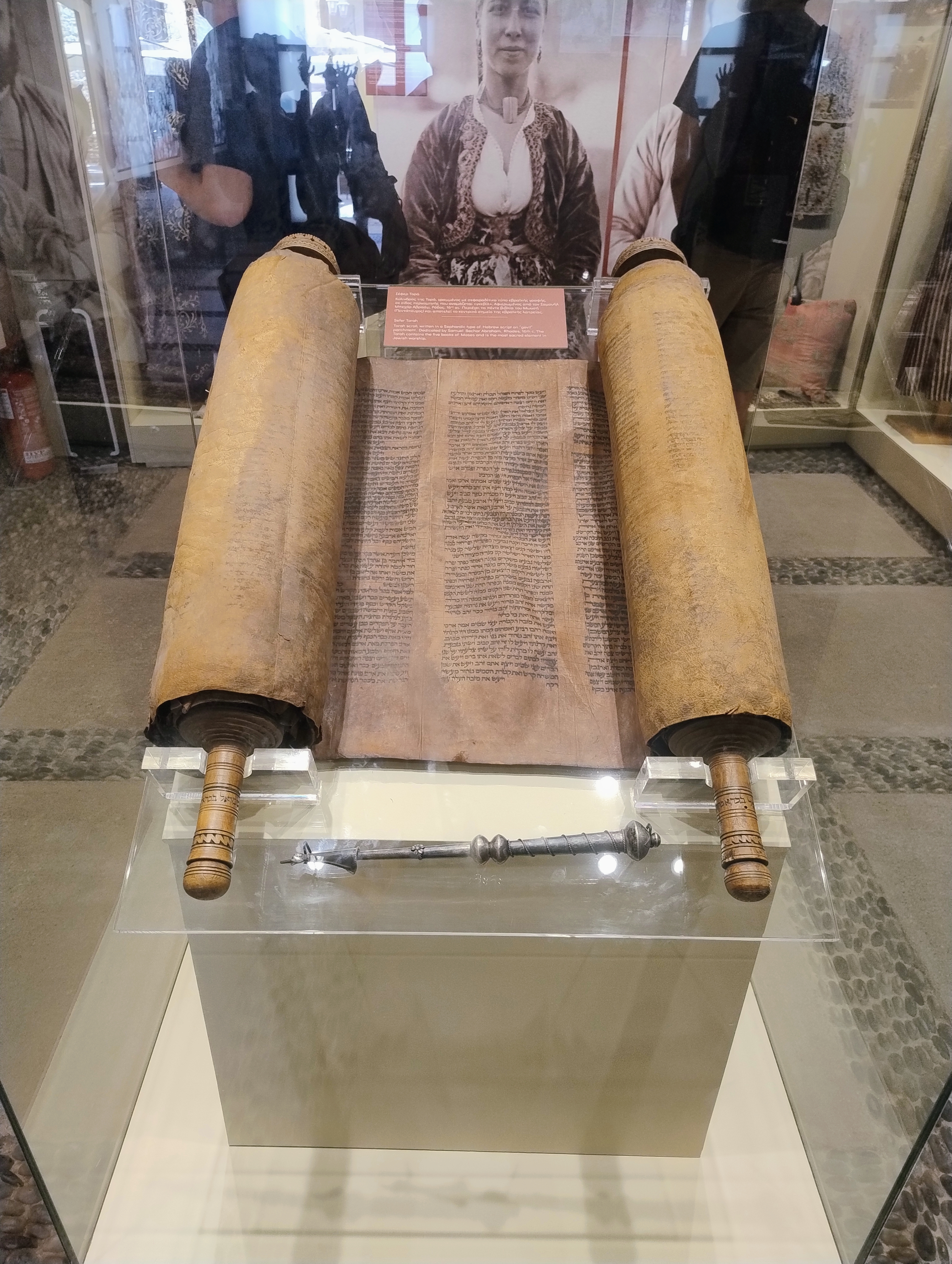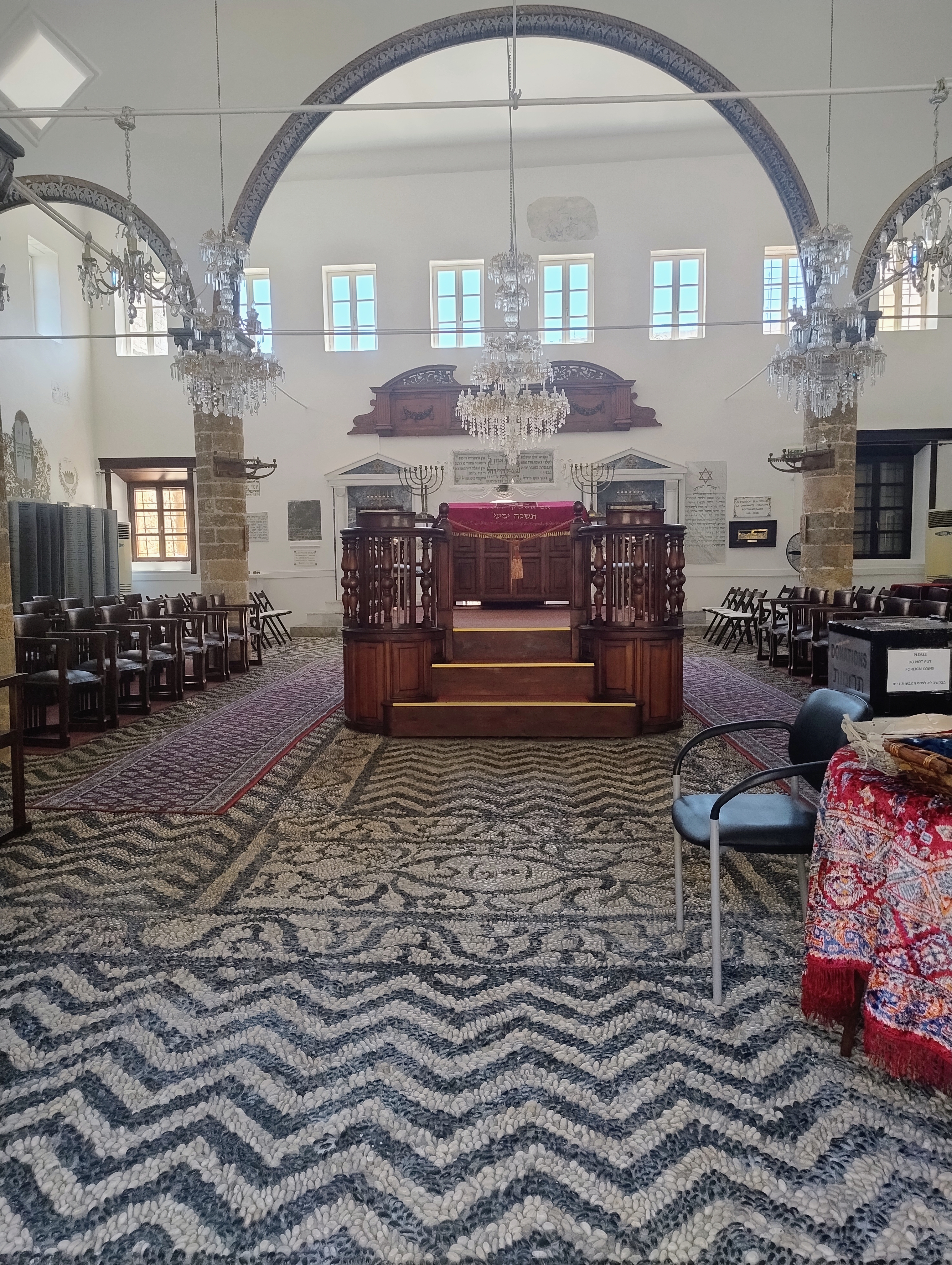 Το περασμένο καλοκαίρι σε μια βόλτα στην Παλιά Πόλη της Ρόδου βρέθηκα μπροστά στη Συναγωγή Kahal Shalom που αναστηλώθηκε σχετικά πρόσφατα. Μετά τον πόλεμο μεγάλο μέρος της Εβραικής συνοικίας στη Ρόδο είχε καταστραφεί από τους βομβαρδισμούς. Πολύ λίγα άτομα της κοινότητας επέζησαν: σύμφωνα με το βιβλίο κάποιοι είτε είχαν κάνει μεικτούς γάμους με Τούρκους οπότε είχαν πολιτογραφηθεί ως Τούρκοι πολίτες και τελευταία στιγμή γλύτωσαν, είτε αντίστοιχα με Ιταλούς πολίτες. Ελάχιστοι είχαν καταλάβει αυτό που ερχόταν και έφυγαν με το ρούχο που φορούσαν. Όμως σιγά σιγά με συνεισφορές από όλο τον κόσμο κατάφεραν να αναστηλώσουν αυτή τη συναγωγή και το Μουσείο που βρίσκεται δίπλα της, και να φέρουν πίσω στη Ρόδο οικογενειακά κειμήλια και ιερά αντικείμενα.