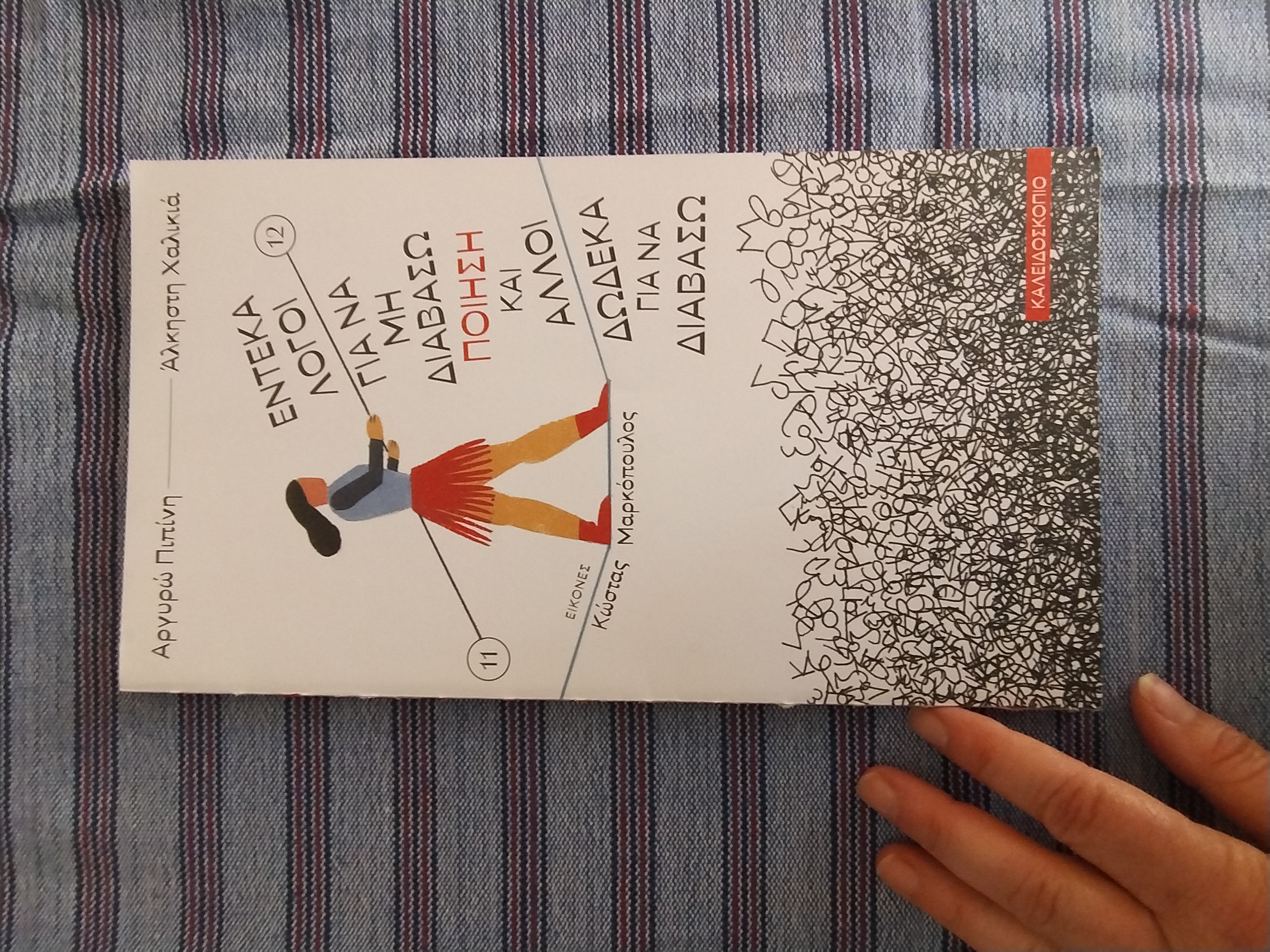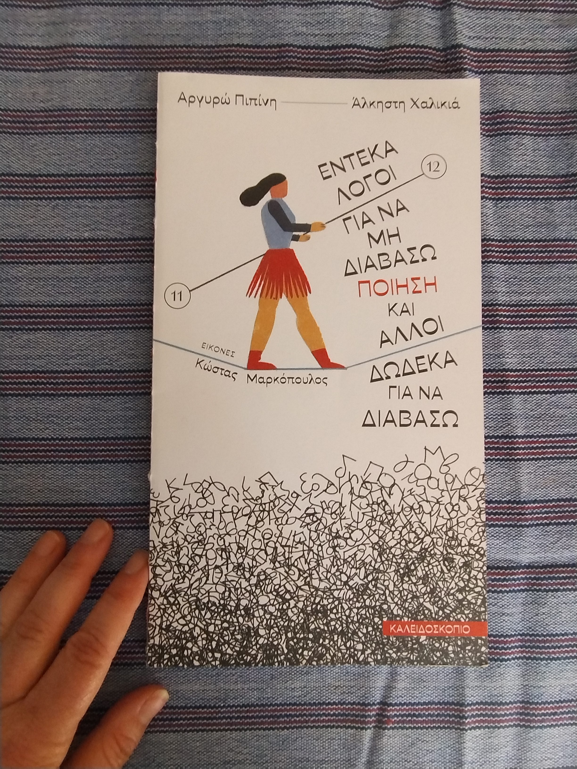 Ένα βράδυ πριν λίγο καιρό το βιβλίο που διαβάζω κανονικά μου φαίνεται πολύ μεγάλο, πολύ δύσκολο. Ευτυχώς εκείνο το απόγευμα είχα αγοράσει το βιβλίο «Έντεκα λόγοι για να μη διαβάσω Ποίηση και άλλοι δώδεκα για να διαβάσω» της Αργυρώς Πιπίνη και της Άλκηστης Χαλικιά από τις εκδόσεις Καλειδοσκόπιο. Αρχίζω να διαβάζω τον πρόλογο στον οποίο οι συγγραφείς διαλέγουν μερικά χαρακτηριστικά ποιήματα από τις διάφορες φάσεις της ζωής τους. Και ξαφνικά είναι σαν να έχω γνωρίσει μια φίλη, μια συμμαθήτρια έχει έρθει δίπλα μου και λέμε μαζί το ποίημα της 25ης Μαρτίου στη σχολική γιορτή. Συνεχίζω να διαβάζω, γελάω με τις ερωταπαντήσεις και απολαμβάνω την εικονογράφηση που είναι σαν να ανοίγει πιο βαθιά τις χαρακιές που αφήνουν τα ποιήματα. Λένε κάπου: