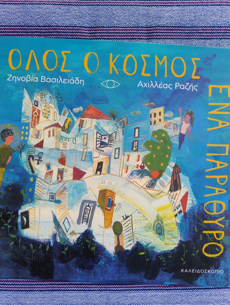 Όπως μάλλον θα έχετε καταλάβει μέχρι τώρα αγαπάω πολύ τα παιδικά βιβλία. Όχι μόνο γιατί τα χρησιμοποιώ σαν εργαλεία στη δουλειά μου, σαν αφορμή για συζητήσεις με τα παιδιά στο σχολείο, σαν πηγή γνώσεων. Τα αγαπάω για μένα, γιατί μου θυμίζουν την ποίηση της καθημερινότητας, γιατί κάνουν τα μικρά πράγματα μεγάλα, γιατί ανοίγουν παράθυρα. Κι έπειτα δεν υπάρχει πιο οικονομικός τρόπος να βάλεις την τέχνη στο σπίτι σου, να βλέπεις σπουδαίες εικόνες που σε κάνουν να αλλάζεις οπτική γωνία. Τα βιβλία του εικαστικού Αχιλλέα Ραζή είναι ένα τέτοιο παράδειγμα. Το βιβλίο «Όλος ο κόσμος ένα Παράθυρο» σε κείμενα της Ζηνοβίας Βασιλειάδη και εικόνες του Αχιλλέα Ραζή είναι μια σειρά από εικόνες με πολύ σύντομα κείμενα για το τί μπορεί να βλέπουμε από ένα παράθυρο. Εικόνες στοχαστικές, απλές και περίπλοκες ταυτόχρονα. Ο ίδιος ο ζωγράφος λέει γι αυτό του το βιβλίο: Όταν άρχισα να δουλεύω την εικονογράφηση, σκεφτόμουν τα παράθυρα σαν μικρές σκηνές. Από εκεί που μπαίνει το φως, από εκεί που βλέπεις τον έξω κόσμο, αλλά κι από εκεί που σε βλέπει ο κόσμος πίσω.